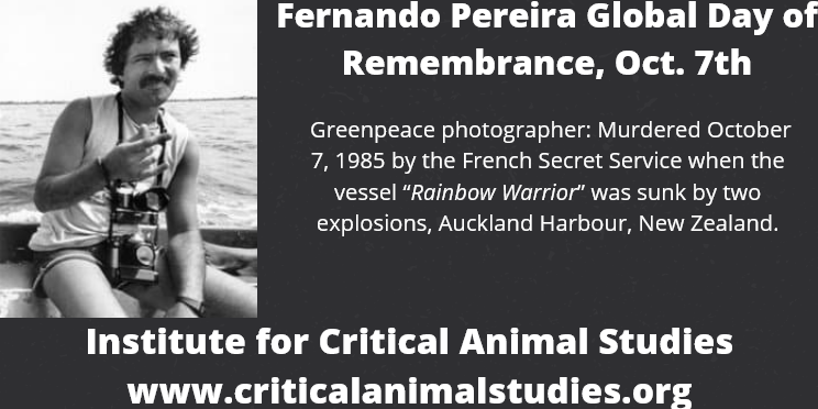 Fernando Pereira, Greenpeace photographer: Murdered October 7, 1985 by the French Secret Service when the vessel “Rainbow Warrior” was sunk by two explosions, Auckland Harbour, New Zealand.